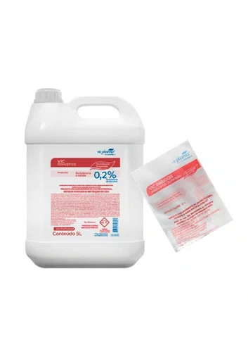 VIC PERACÉTICO 0,2% é indicado para desinfecção de artigos semicriticos como: equipamentos em geral, endoscópios, tubos corrugados, kits de micronebulização, nebulizadores de oxigênio, aço inox, aço cirúrgico, alumínio, plástico, acrílico e látex.Produto de uso profissional e assistência à saúde. VIC PERACÉTICO 0,2% – Pronto uso, é um desinfetante de alto nível, de ação rápida e eficiente exclusivamente de uso profissional odonto médica hospitalar, que possui como principio ativo o ácido peracético. Indicado para desinfecção de artigos semi críticos. Eficaz contra amplo espectro de microorganismos.
