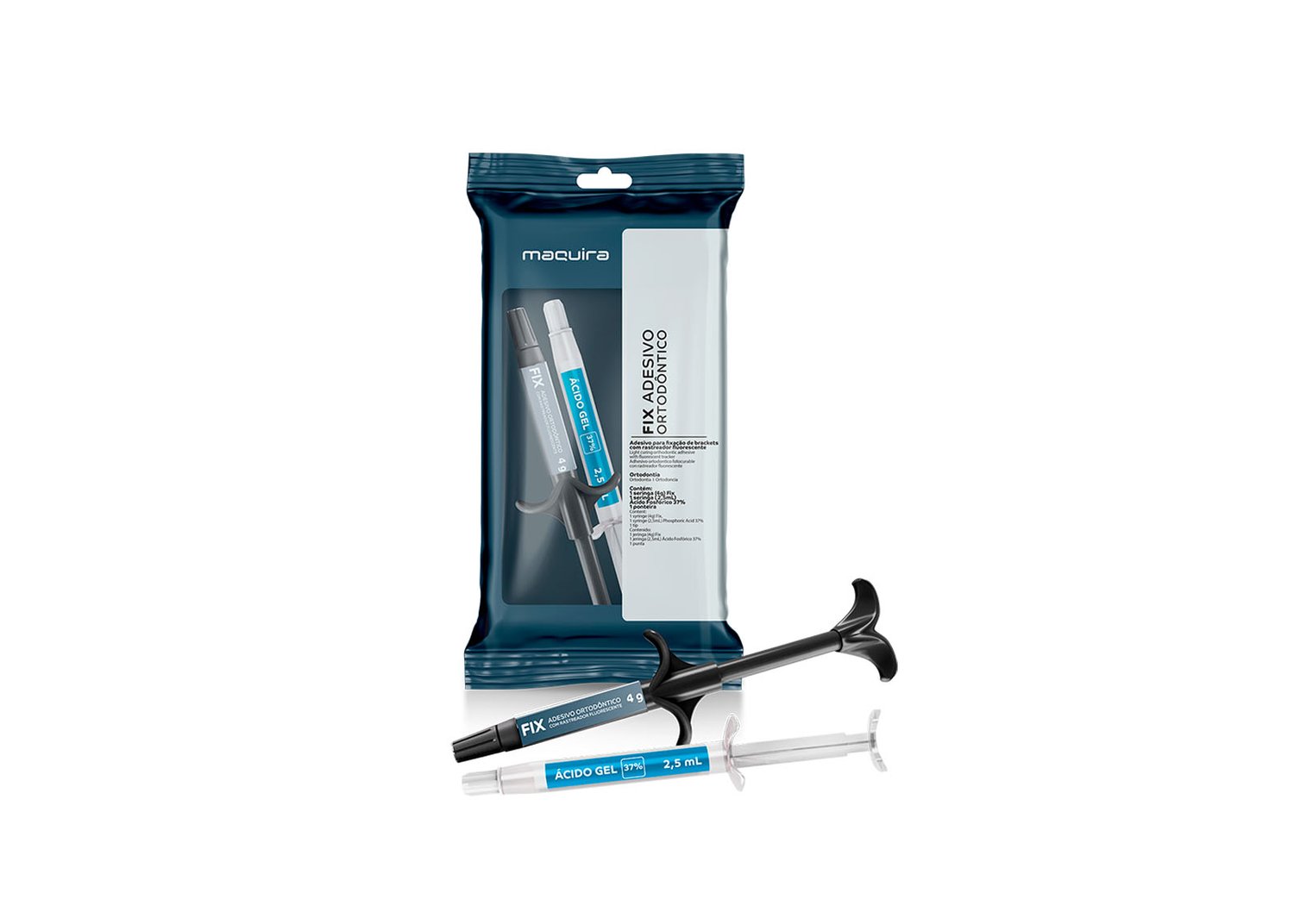 Indicação :* Indicado para colagem de bráquetes.Caracteristicas :* Composto por monômeros de metacrilatos e partículas de sílica: Garante uma melhor adesão na superfície dental;* Fotopolimerizável: Permite ao profissional dominar o tempo de presa do material e instalar os arcos logo após a fixação dos bráquetes;* Fotopolimeriza em 20 segundos;* Hidrofóbico: Deve ser trabalhado em dentes totalmente secos, sem a contaminação da saliva ou óleo dos jatos, pois isto interfere na adesão no esmalte;* Possui rastreador fluorescente: Quando o produto recebe energia uv (ultra violeta) o mesmo emite luz fluorescente que possibilita ao profissional distinguir o material do esmalte, facilitando a remoção do cimento de modo seletivo com o auxílio de brocas multilaminadas;* Necessita condicionamento ácido prévio a sua utilização;* Seringa com design diferenciado, possui primer incorporado ao adesivo;* Excelente viscosidade para manuseio;* Excelente adesão ao esmalte;* Apresenta flúor em sua formulação.Itens inclusos :*Embalagem com 1 unidade de 4g + ácido 37% de 2,5ml.