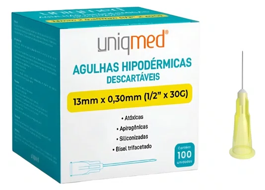 A Agulha Descartável Uniqmed 13 x 0,30 (30G) é indicada para procedimentos que exigem alta precisão, conforto e segurança. Fabricada em aço inoxidável de alta qualidade, proporciona perfuração suave, reduzindo o desconforto do paciente durante a aplicação.