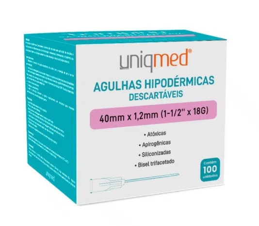Possui bisel trifacetado, que facilita a penetração e reduz o trauma no tecido, e é compatível com seringas padrão Luer e Luer Lock. Cada agulha é estéril, apirogênica, atóxica e de uso único, proporcionando máxima segurança e prevenindo contaminação cruzada.
