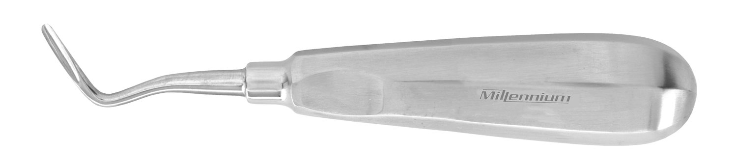 *Elevadores Apicais possuem lâmina longa, afiada, fina e côncava projetada para deslizar nas paredes da cavidade alveolar. é utilizada para elevar a raiz fraturada do alvéolo dentário, remoção de pontas e restos radiculares e fragmentos abrigados no alvéolo em áreas de difícil acesso durante a exodontia.