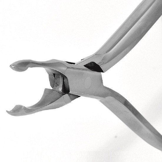 * Alicate para contornear bandas especialmente de molares. Pelo fato de ter uma de suas extremidades em formato convexo e a outra em côncavo ajusta-se a forma anatômica das coroas dos dentes posteriores quando se posiciona a extremidade côncava do alicate na face externa da banda.