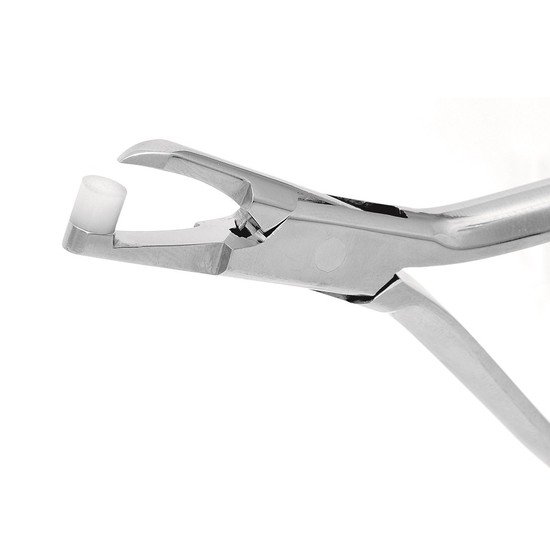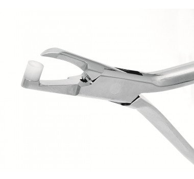 * Alicate utilizado para remoção de banda posterior, apoia na superfície oclusal do molar para posicionar a ponta de remoção na borda gengival da banda.