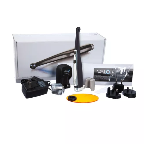 Indicaçâo:* Valo cordless utiliza diodos emissores de luz (led) personalizados, de amplo espectro para produzir luz de alta intensidade entre 395 e 480nm, que são capazes de polimerizar todos os materiais odontológicos fotopolimerizáveis. Essa intensidade também faz com que a luz penetre através de cerâmica, e é capaz de polimerizar cimentos resinosos, de maneira semelhante a luzes halógenas de qualidade.Caracteristicas:* Possui programação contínua.* Ponteiras fabricadas em polímero especial.* O aparelho foi desenvolvido para permanecer nos suportes padrão de peça de mão das cadeiras odontológicas, ou pode ser montado em qualquer lugar, com o suporte de fixação que vem no kit.* Valo cordless vem equipado com sensores que registram o movimento: Quando o aparelho não está sendo utilizado, irá automaticamente entrar em modo de hibernação, e quando for movimentado, irá retornar às configurações utilizadas pela última vez.* Feixe de luz colimado que proporciona uma polimerização completa e uniforme.* Comprimento de onda: 395 a 480 nm.* Bivolt.* Sem fio. * Peso: 190g (150g sem bateria)* Recarga/alimentação: 2 pares de pilhas recarregáveis (acompanha carregador)* Intensidade de luz: 3 modos - 1.000, 1.400 e 3.200 mw/cm²* Tempo de exposição: 1, 2, 3, 4, 5, 10, 15 e 20 segundos.* Revestimento de safira resistente a riscos.* Selamento de teflon para facilidade de limpeza.* Garantia: 2 anos.Itens inclusos:* Unidade. Sem fio. Acompanha 4 pilhas recarregáveis + 1 carregador de pilha + 1 fonte de alimentação para carregador + 1 suporte para fixação + 50 barreiras protetoras + 1 protetor de luz.