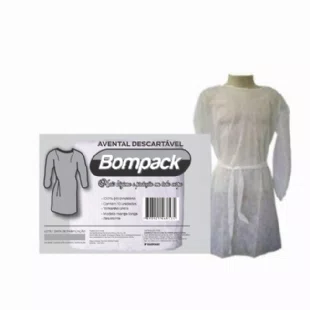 AVENTAL DESCARTAVEL MANGA LONGA BRANCO TNT C/ 10 UNI - BOMPACK