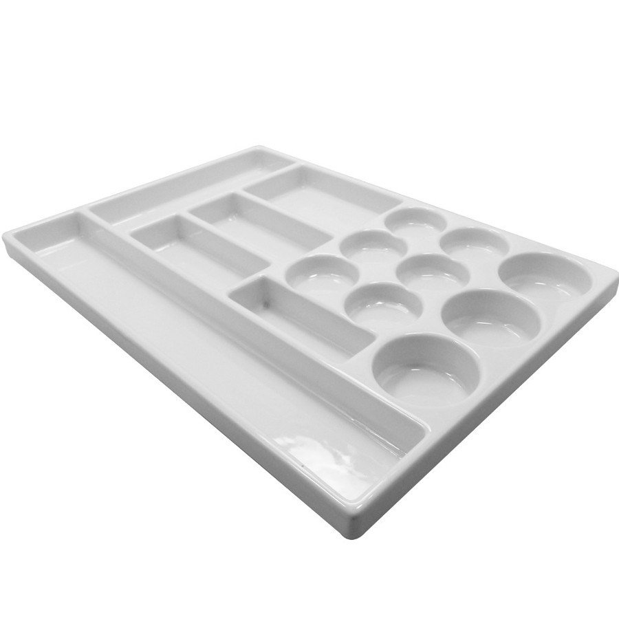 Indicado para armazenar e organizar instrumentos odontológicos.* Para 9 medicamentos* Com 15 divisões. * Tamanho: 35x25x2,5cm.* Divisórias adaptáveis.