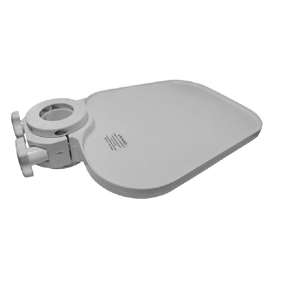 Indicação:* Um produto auxiliar destinado a acomodar os periféricos utilizados pelos profissionais da área da saúde.Caracteristicas:* Permite movimentos giratórios de 360º.* Agiliza o acesso a itens auxiliares.* Bordas salientes para retenção de líquidos.* Não danifica pintura da coluna.* Adapta em colunas nas medidas de 1 ½ “ a 2 “ polegadas. 2” = 50,80 mm (2 polegadas) | 1” ½ = 38,10 mm (uma polegada e meia)* Dimensão: 300mm x 240mm.Itens inclusos:* Acompanha bandeja, arruelas, calço, parafuso e mancal.