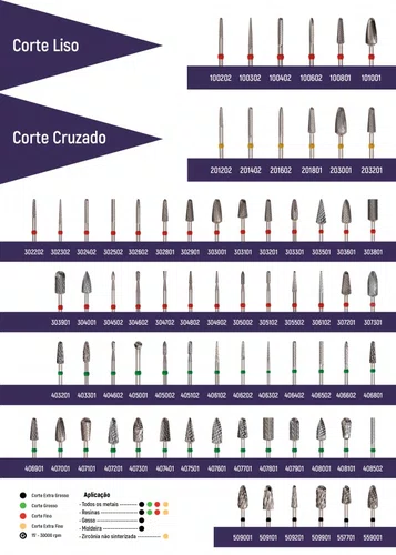Indicação:* Indicado para todos os metais e resina acrílica.Caracteristicas:* Diferentes cortes, separados por tarjas coloridas.* Rigoroso processo de fabricação, com garantia de durabilidade.* Halice de proteção motora inclusa, impede que a poeira entre no motor.# corte extra grosso = preto# corte grosso = verde# corte fino = vermelho# corte extra fino = amarelo* 15 - 30000 rpmItens inclusos:* Embalagem com 1 unidade.