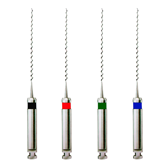 Formato espiral, procedimento mais rápido e mais seguro.CaracterísticasEspiral de aço inoxidável, de baixa rotação com 25mm de comprimento. Tamanhos: 001-004 (sortidas). Listra colorida indicativa de tamanhos ( 001 na cor vermelha), (002 na cor azul), (003 na cor: Verde) e (004 na cor: Preto).AplicaçãoIndicada para levar medicações e/ou cimentos para o interior dos canais radiculares.