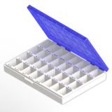A Caixa para Bandas Superiores está identificada com a tampa na cor vermelho cristal, enquanto a das Bandas Inferiores está com a tampa na cor azul cristal. Ambas com a base na cor branca, com casulos arredondados facilitando o manuseio. A gravação dos códigos na base é feita à laser para melhor visualização e durabilidade. São confeccionadas em poliestireno de alto impacto.