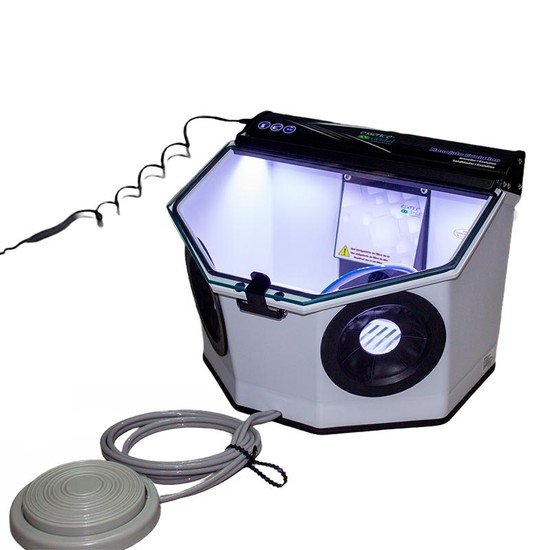 - Exaustor com filtro de tecido tripla camada; para partículas jateadas que durante o trabalho atrapalham a visualização das peças;