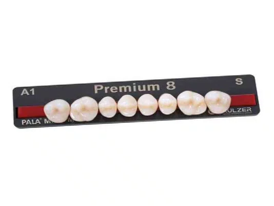 A linha de dentes pala premium, com sua morfologia totalmente anatômica e sua dinâmica de luz natural, produz resultados altamente estéticos, especialmente em próteses totais, removíveis e prótese sobre implantes.