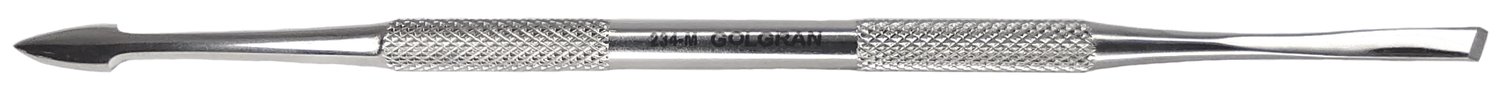 * Possui uma ponta em forma de espátula comprida e outra triangular.