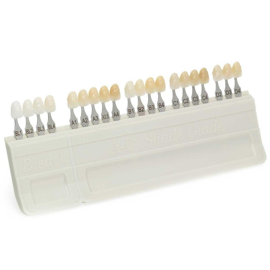 * A escala de cores é um guia de cores que auxilia o profissional na determinação da coloração do dente do paciente para que seja possível produzir a resina com total compatibilidade e assim realizar a restauração.* Escala com 20 cores.