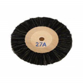 Escova circular de crina para desbastar, polir e lustrar peças em resina acrílica em prótese total, parcial ou provisórios.Centro de madeira com carreiras de crina. Uso indicado em politriz..