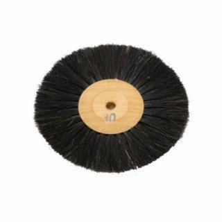 Escova circular de crina para desbastar, polir e lustrar peças em resina acrílica em prótese total, parcial ou provisórios.Centro de madeira com carreiras de crina. Uso indicado em politriz..