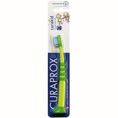 Escova dental especificamente desenvolvida para a higiene oral dos bebês e das crianças pequenas. Com ação seletiva sobre a placa bacteriana, pela presença de cerdas do tipo supersoft com textura ultramacia, tornam a escovação atraumática e um verdadeiro prazer.A escova de dentes curakid tem uma cabeça pequena cônico adornado com filamentos ultra fino para limpeza de dentes jovens. O revestimento de borracha macia do cabo é perfeito para mãos pequenas, com forma e aperto para garantir a facilidade de uso. Stands vertical em que é pé.