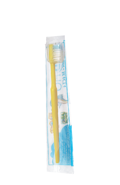 Escova dental infantil com cerdas de nylon.Macias ou extra-macias, com 4 fileiras de tufos, contendo 28 tufos de cerdas aparadas uniformemente e arredondadas na mesma altura.