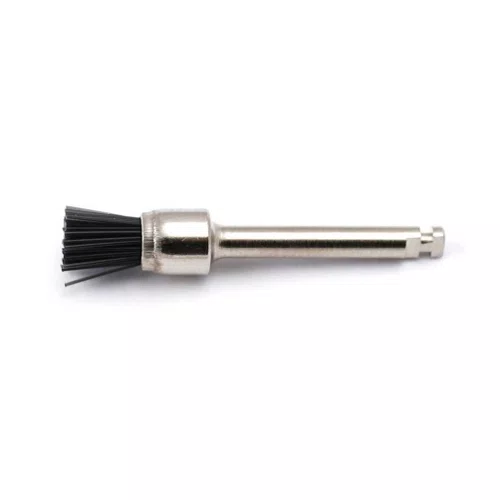 A Escova de Robinson Preta é utilizada no contra ângulo e indicada para pré-polimento de resina, podendo ser utilizada com pasta de polimento e óleo mineral.
