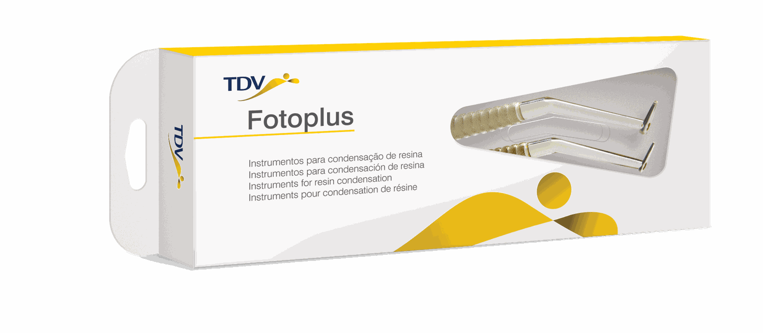 ApresentaçãoEmbalagem com 2 peças..Características* Reduz o risco de infiltração marginal;* Instrumento translúcido, excelente condutor de luz;* Não adere aos compósitos;* 2 instrumentos, 4 formatos de pontas..IndicaçõesFotoplus foi desenvolvido para condensação de compósitos em restaurações de classes i e ii. Mantendo-se o primeiro incremento de resina na caixa proximal sobre pressão com uma das extremidades do instrumento enquanto faz-se a polimerização, obtém-se resultados significativos na redução da infiltração marginal.