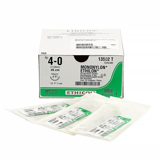 - Fio de sutura sintético, de nylon monofilamentar, estéril, não absorvível, de encapsulamento gradual por tecido conectivo fibroso;