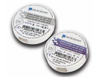 Embalagem com 1 rolo. 0,0375x0,5m.Disponível nas larguras 5 e 7mm.Usada para substituir uma ou mais paredes ausente do dente. Ideal pata promover o contorno proximal, sendo rígida o suficiente para não se descolar durante a condensação do amálgama. De fácil aplicação e remoção sem danificar a restauração..Fitas de aço inoxidável, apresentadas em rolos.