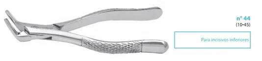 • Nº 1: Indicado para incisivos e caninos superiores;• N° 2: Indicado para extração de pré-molares e molares superiores de ambos os lados;• Nº 3: Indicado para extração de pré-molares e raízes inferiores de ambos os lados;• N° 4: Indicado para extração de raízes superiores de ambos os lados;• N° 5: Indicado para extração de incisivos inferiores de ambos;• N° 6: Indicado para extração de molares inferiores de ambos os lados;• N° 16: Indicado para molares inferiores de ambos os lados;• Nº 18l: Indicado para extração de molares superiores do lado esquerdo;• N° 18d: Indicado para molares superiores de ambos os lados;• N° 18r: Indicado para molares inferiores de ambos os lados;• N° 21: Indicado para extração de pré-molares inferiores;• N° 27: Indicado para molares superiores de ambos os lados;• N° 44: Indicado para incisivos inferiores;• N° 65: Indicado para raízes inferiores de ambos os lados;• Nº 69: Indicado para extração de fragmentos e raizes pequenas superiores e inferiores;• N° 150: Indicado para dentes e raízes superiores;• N° 151: Indicado para dentes e raízes inferiores.-• Aço inox;• Autoclavável.