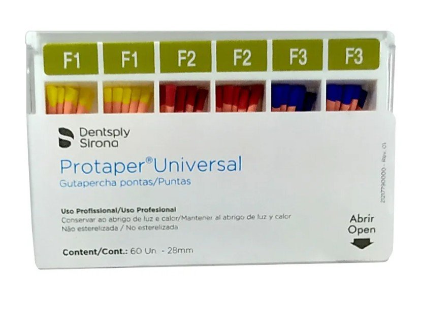 Cada embalagem contém 60 cones, compatíveis com o sistema Protaper Universal F1, F2 e F3, garantindo instrumentação rápida e segura em canais retos ou curvos. Seu design uniforme permite manuseio fácil e controle total, tornando o procedimento mais eficiente e seguro para o profissional.