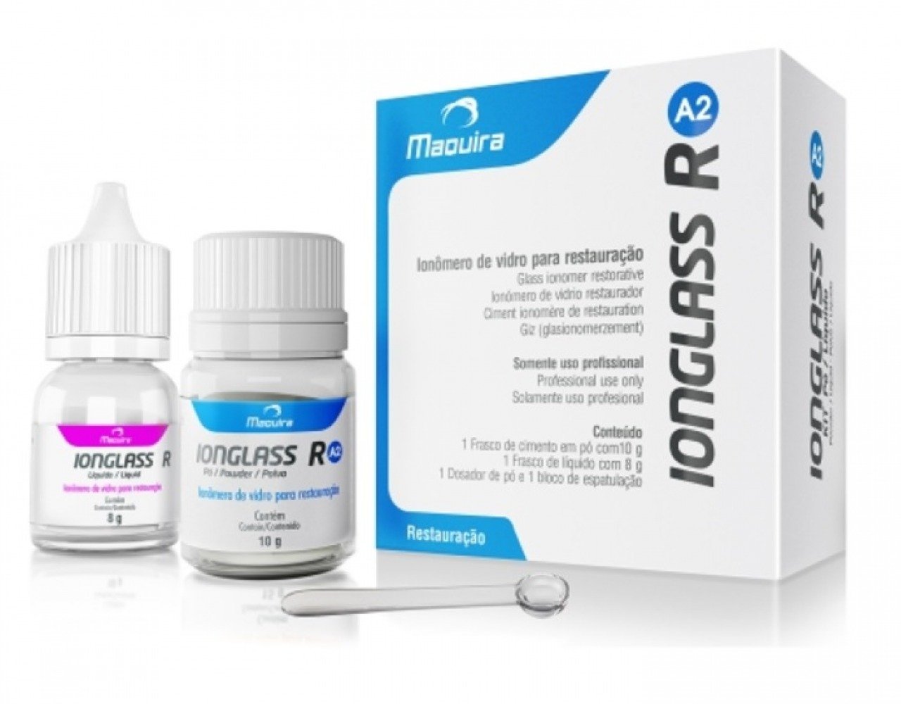 IndicaçãoIonglass r é um ionômero de vidro autopolimerizável altamente resistente, estético, com viscosidade adequada indicado para trabalhos restauradores.Apresenta excelente biocompatibilidade e baixo risco de sensibilidade pós-operatória.Possui um ótimo selamento marginal na cavidade e inibe a formação de fendas.Pode ser usado na técnica de atr (tratamento restaurador atraumático), em todas as classes de restaurações de dentes decíduos, restaurações provisórias em dentes permanentes (classes i, ii, iii e iv), base de restauração definitiva, lesões não cariosas e cimentação provisória de peças protéticas.Ionglass r tem uma boa adesão ao esmalte e à dentina sendo desnecessária a criação de retenções..Características* Indicado para todas as classes de restauração (dentes decíduos);* Cimentação provisória de coroas;* É um cimento de presa rápida;* Possui grande adesão ao esmalte e a dentina;* Ótima consistência para manuseio..Itens inclusosKit com 1 frasco pó a3 + 1 frasco líquido a3 + 1 dosador pó + 1 bloco de espátulação.