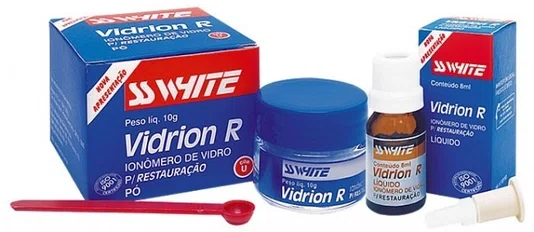 IndicaçãoMisturado com vidron r é indicado para restaurações de dentes decíduos, incluindo a classe i, preparo das erosões da região cervical e restaurações classe v, restaurações de classe iii e casos selecionados da classe i, confecções de núcleos para coroas.CaracterísticasAutopolimerizável.A adesão de vidrion r ao esmalte e a dentina, dispensa, muitas vezes, a necessidade de retenções adicionais nos preparos cavitários. Devido à sua composição, apresenta boa resistência à compressão, estabilidade de cor e translucidez adequada a um material estético restaurador.Alta liberação de flúor e o equilíbrio do ph auxiliam na profilaxia dental.Na endodontia, é largamente utilizado nas trocas de curativos, sem que ocorram riscos de infiltração, devido à sua alta densidade.Itens inclusosEmbalagem com 10g pó + 8ml líquido com dosador.