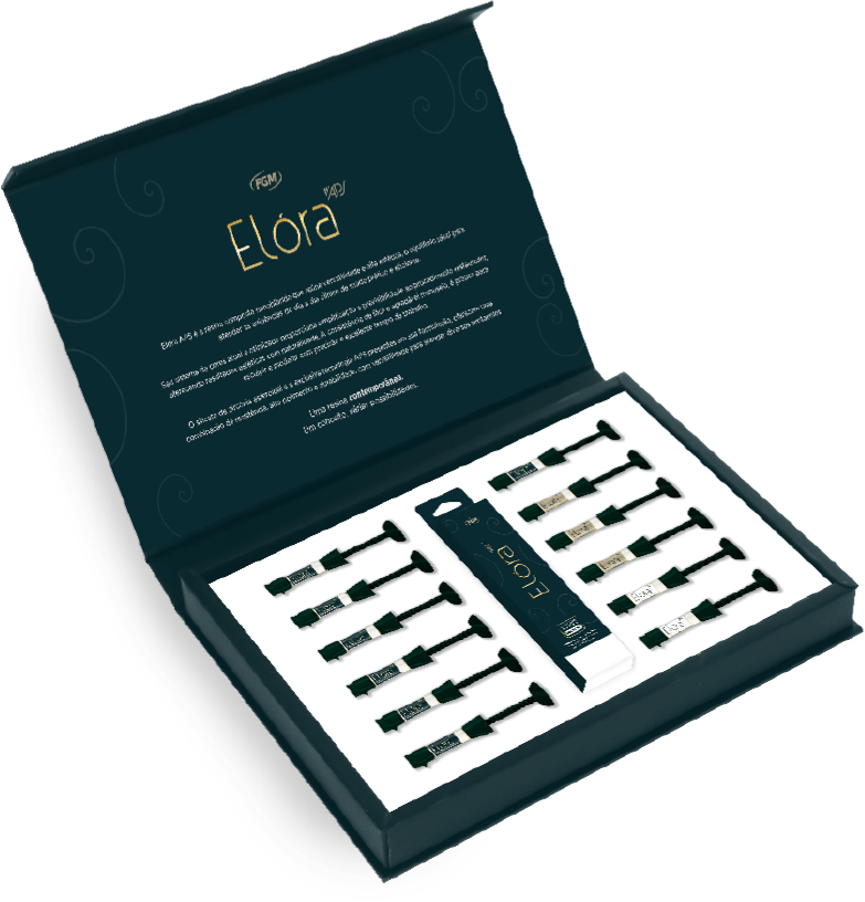 O Kit Resinas Elora APS Elegance da FGM é a solução completa para restaurações estéticas de alta qualidade, oferece uma ampla variedade de cores e opacidades, possibilitando resultados naturais e personalizados para diferentes casos clínicos. Desenvolvido com a exclusiva tecnologia APS, garante desempenho superior e praticidade para o profissional.