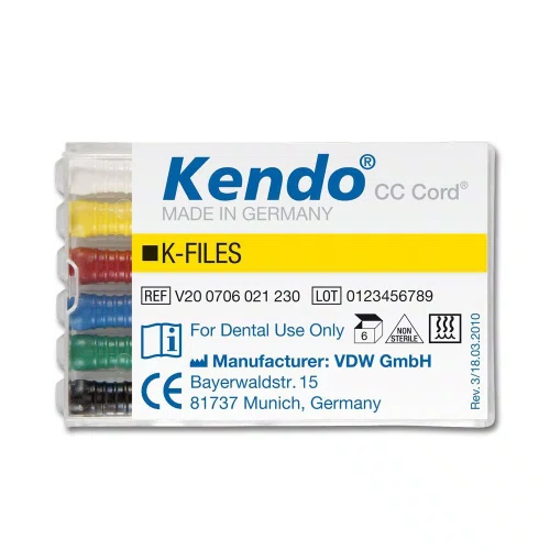 CaracterísticasLimas em aço inox;Secção quadrangular;Fabricada na alemanha, tecnologia cc cord..AplicaçãoPara todas as técnicas de preparo do canal radicular com movimentos rotatórios e de limagem.