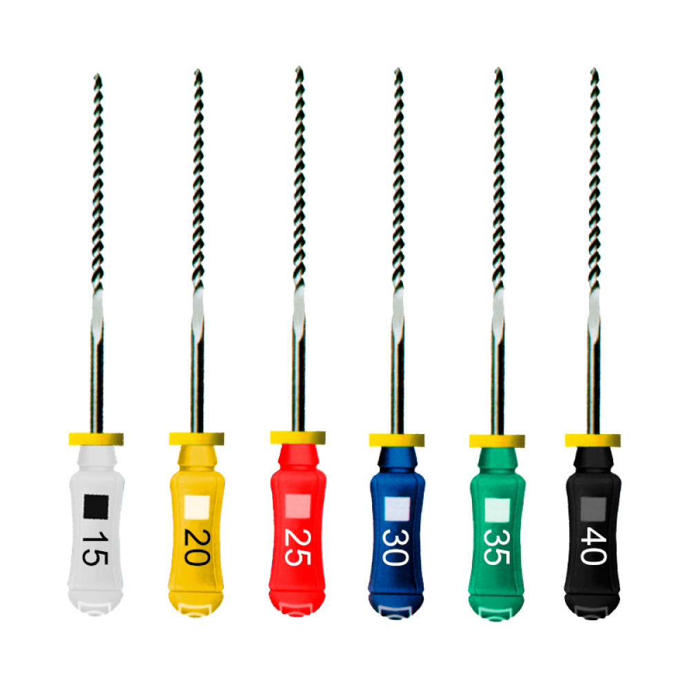 Para todas as técnicas de preparo do canal radicular com movimentos manuais rotatórios e de limagem.Lima em aço inoxidável com secção transversal quadrangular.*Embalagem com 6 unidades estéreis.
