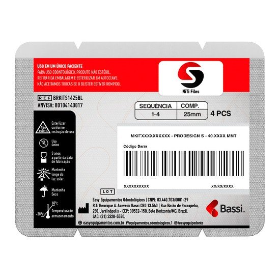 *O sistema ProDesign S é composto por limas produzidas em liga de NiTi com Tratamento Térmico CM, design variados específicos para funções específicas, o que potencializa tanto segurança quanto eficiência. Apresenta soluções seguras, fáceis de aplicar no dia a dia e de baixo custo. É uma sequência simples composta de 4 limas: 2 Orifice Shaper, 1 de patência apical e 1 de acabamento. Elimina o uso de Gates Glidden. Esse sistema também pode ser usado em movimento reciprocante.