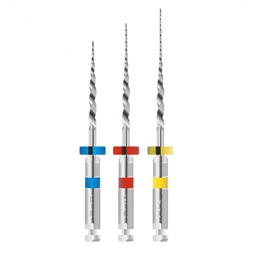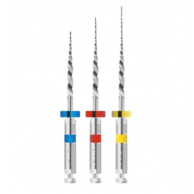 Kit com 3 unidades: #30/09 com 16 mm (ponta ativa), #25/08 com 18 mm (ponta inativa) e #20/07 com 22 mm (ponta inativa).; velocidade recomendada: 350 rpm | torque 2n. Kit ideal para desobstrução de canais já tratados, remove a gutta percha facilmente sem necessidade de solvente. Excelente resistência mecânica e fácil de utilizar.