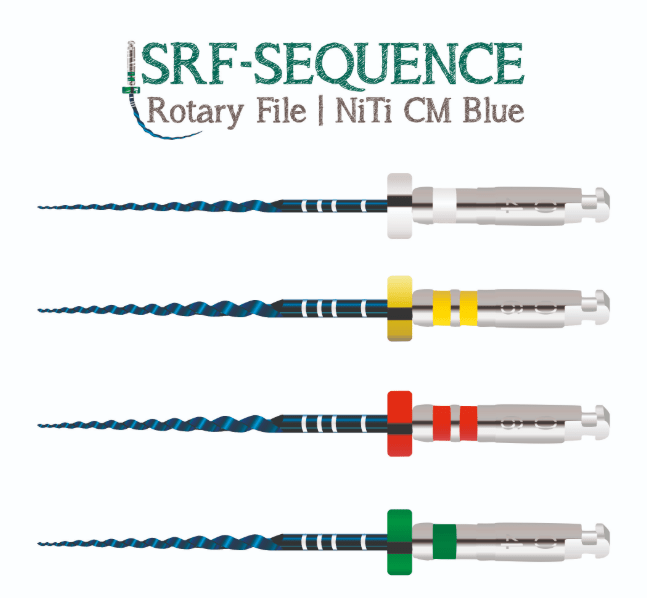 Limas rotatórias em niti cm (controle de memória) blue.- altamente flexível, com excelente resistência e poder de corte;- possuem tratamento térmico de superfície com controle de memória;- ponta inativa, para manter a luz do canal.- secção transversal triangular, tapper 04 e 06Velocidades:Lima 15/04: 350 rpm - 2nDemais limas: 400 rpm - 2n