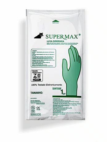 As luvas cirúrgicas supermax são fabricadas com látex de alta qualidade e processos industriais que reduzem o índice de proteínas do látex, oferecendo menor probabilidade de reações alérgicas..A espessura e o comprimento do punho das luvas cirúrgicas supermax são maiores do que o estabelecimento pela regulamentação específica, oferecendo mais segurança e proteção..Baixo índice de proteínas de látexEspessura maior que de outras luvasSegurança e qualidade aos profissionais de saúdeAlta resistência durante o usoDisponível em envelopes com 1 par cadaTamanhos: 6.5, 7.0, 7.5, 8.0 e 8.5Cor: Borracha naturalIndicações: Hospitais, clínicas médicas, odontológicas, veterinárias, laboratórios, locais onde necessitem de proteção do usuário contra riscos biológicos.