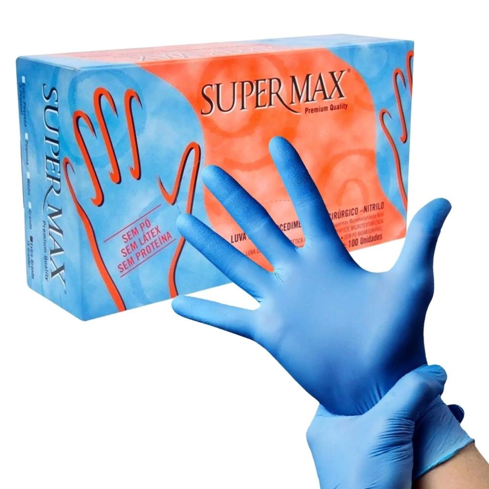 Luva de Procedimento de Nitrílica Azul Sem Pó G - Supermax
