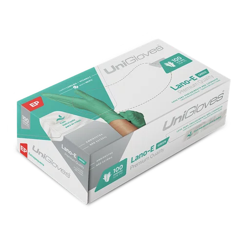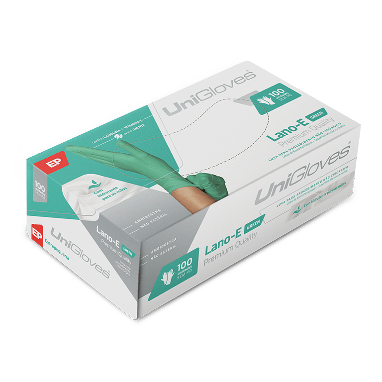 Proteção e hidrataçãoA lano-e é uma luva médica não cirúrgica revolucionária, que contém na parte interna uma exclusiva formulação que protege as mãos. Contendo lanolina e vitamina e, em contato com a umidade proveniente da transpiração do usuário a formulação transforma-se em uma eficiente emulsão que nutre e hidrata as mãos do usuário, melhorando a cicatrização, a elasticidade e tornando-as mais macias e saudáveis..Funções da lanolinaAtua como um hidratante extremamente eficientePrevine o ressecamento das mãosEstimula a maciez das mãos após o calçamento das luvas.Funções da vitamina eAtua como um antioxidante naturalProporciona um efeito hidratante, anti-inflamatório e cicatrizanteTorna as mão mais macias.QualidadeConformidade com a portaria 332/2012 - inmetroFabricação de acordo com o sistema de qualidade iso 13485/2008 (boas práticas de fabricação)