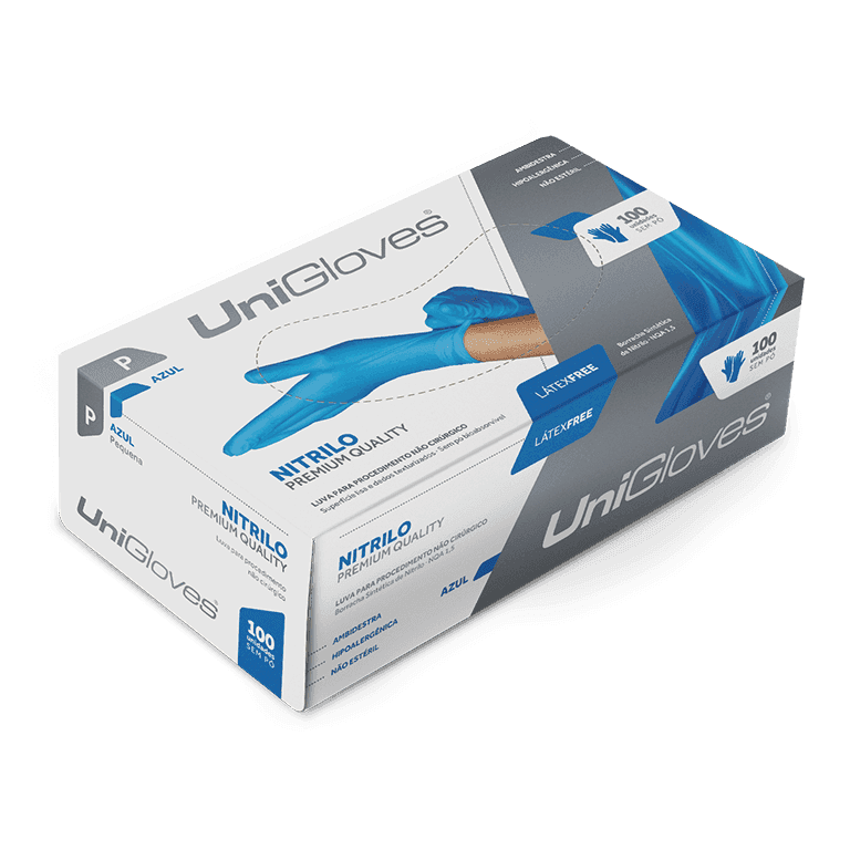 Cuidado e aderênciaFabricadas em borracha sintética, as luvas de nitrilo são indicadas para pessoas sensíveis ao látex e apresentam uma composição que proporciona maior sensibilidade tátil, ajuste às mãos, conforto e elasticidade. Quando submetidas a estresse de alongamento ocasionado por uma tensão constante, as moléculas se acomodam e entram em equilíbrio com as forças de tensão externas, moldando-se às mãos do usuário. Assim, além de evitar alergias em mãos sensíveis à proteína do látex, as luvas de nitrilo também reduzem o desconforto e a fadiga muscular..QualidadeConformidade com a portaria 332/2012 - inmetroFabricação de acordo com o sistema de qualidade iso 13485/2008 (boas práticas de fabricação)