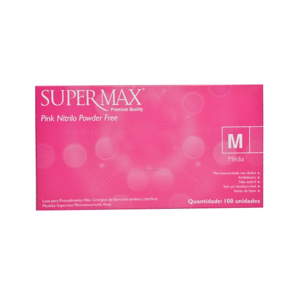 LUVA DE PROCEDIMENTO NITRILO ROSA SEM PO TAM M - SUPERMAX