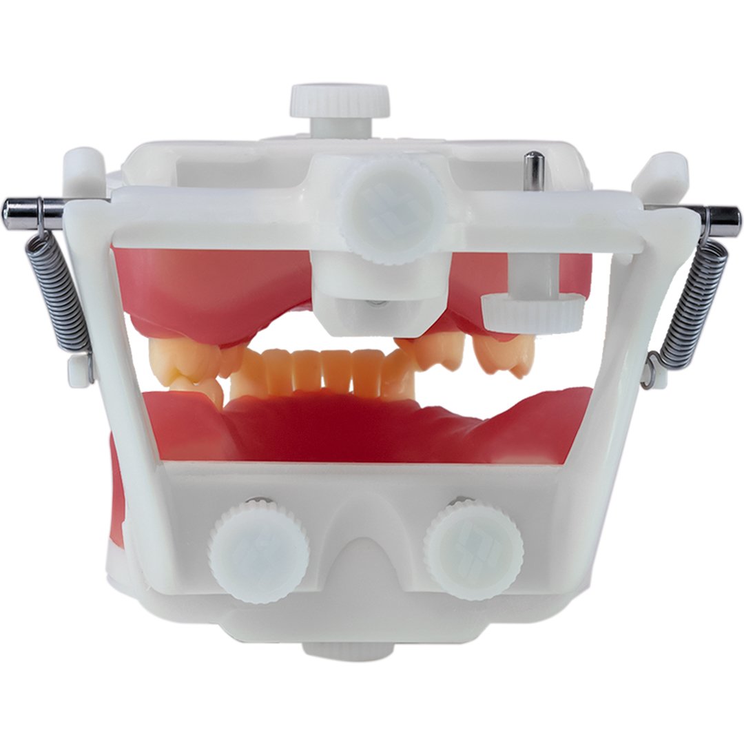 Utilizado na disciplina de prótese total, possibilita ao aluno, desenvolvimento de uma prótese total e implante.