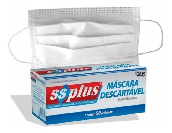 MASCARA DESCARTAVEL COM ELASTICO BRANCA (50 UNIDADES) - SSPLUS