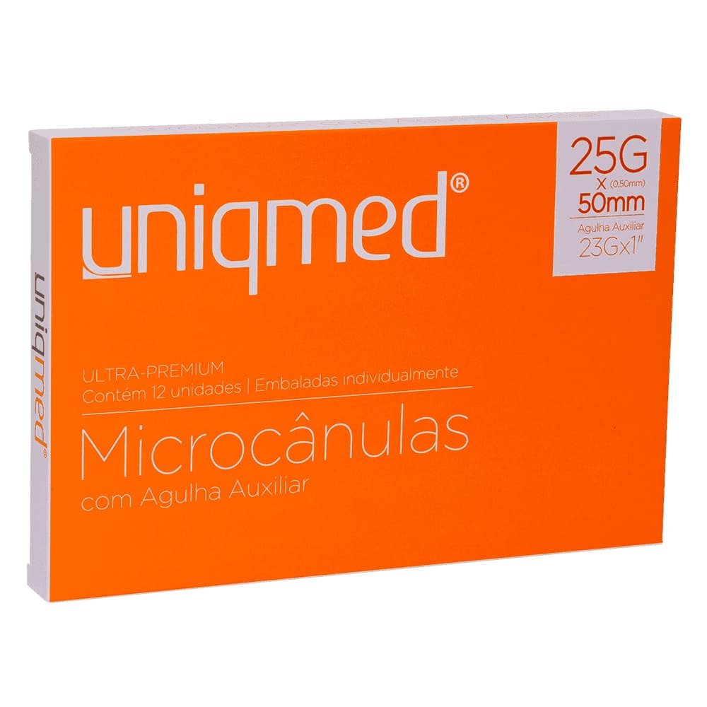 As Microcânulas Uniqmed com Agulha auxiliar são indicadas para aplicações intradérmicas atraumáticas de fluidos e outras substâncias, voltadas especialmente para procedimentos estéticos. São caracterizadas pela sua flexibilidade e maleabilidade, penetram sob a camada da derme, sem danificar os vasos sanguíneos. As microcânulas possuem ponta arredondada (ponta romba), marcadores de 10 em 10mm e marcador na ponta de saída do fluido, a fim de controlar sua profundidade no momento do uso. São compatíveis com aplicação de ácido hialurônico, bioestimuladores e preenchedores diversos (Restylane®, Juvederm®, Teosyal®, Stylage®, Yvoire®, entre outras).