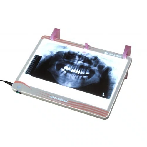 Negatoscópio utilizado no diagnóstico por imagens para a visualização de radiografias panorâmicas, telerradiografias, periapicais, interproximais, oclusais, carpais, seios da face e atm entre outras.