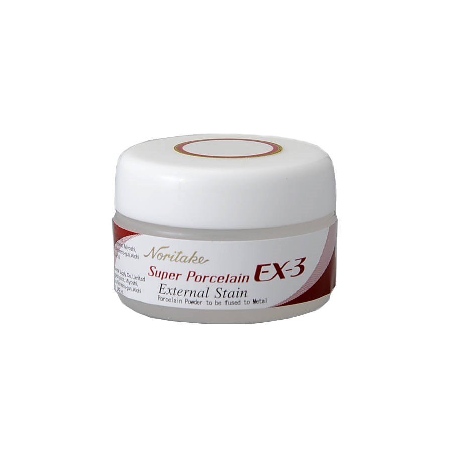 Indicado para aplicação sobre estrutura de metal, jaqueta pura com refratário, platina, laminados, inlay e onlay. Compatível com metais preciosos, semipreciosos, ligas de metais não-preciosos e metalfree para próteses metalo-cerâmicas.* Sintética (isenta de ferro);* Contração mínima, fazendo com que se utilize menos material;* Contração mínima de 3 a 5% (não contrai no espaço interdental e oclusal);* Não há risco de escoamento na aplicação;* Cores correspondentes com a escala noritake;* Dureza da porcelana muito próxima ao do dente natural (dente natural-450 vickers x porcelana ex3-530 vickers);* Sofre abrasão no meio bucal acompanhando o desgaste do dente natural ;* Coeficiente de expansão térmica = 12,4 x 10-6 ~ 14,6 x 10-6;* Resistência à fraturas;* Validade: 10 anos;* Registro anvisa: 10320740026.
