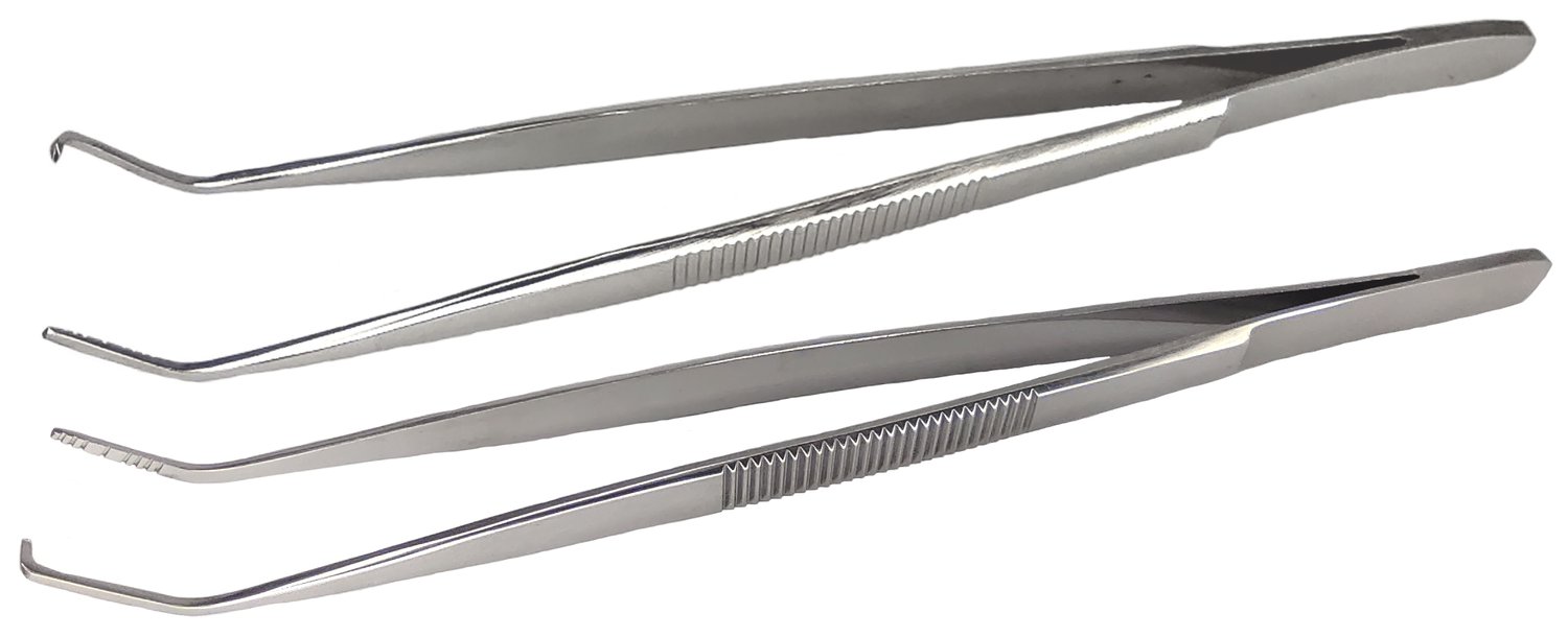 Pontas emparelhadas e calibradas. Em uma de suas pontas há marcações de 1-2-3-5-7-8-9 usadas para estabelecer a altura da perfuração sobre a gengiva na base da bolsa para indicar a linha de incisão.