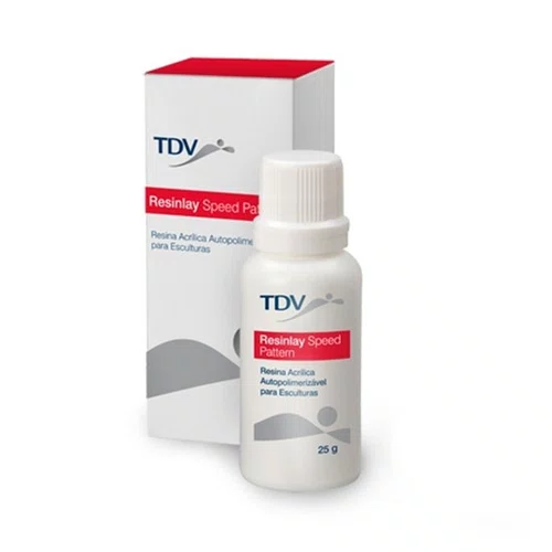 Polimerização ultrarrápida (5 minutos).Baixa contração e fácil aplicação em função do baixo escoamento, a resina proporciona rapidez e precisão nos trabalhos na clínica e no laboratório.Resinlay Speed Pattern atende aos requisitos da ISO 20795-1, Tipo 2, Classe 1, garantindo resultados de alta qualidade.Indicação:A Resina Resinlay Speed Pattern TDV pode ser aplicada por protéticos ou dentistas. É ideal para modelagens intrarradiculares de núcleos fundidos e para esculturas de padrão de fundição. Tem baixa contração de polimerização e é fácil de aplicar em função do baixo escoamento. Resinlay Speed Pattern é indicada para os seguintes casos:Confecção de esculturas de padrão de copings e inlay / onlay.Confecção de coroas telescópicas, barras linguais, conectores e ganchos.Confecção de pontes de Maryland e pontes adesivas.Confecção de barras de protocolo de implante.Confecção de esculturas de próteses fixas.Confecção de supraestruturas de implantes.Moldagens intra radiculares para confecção de núcleos fundidos.Fixação de solda e transferentes de implante.Confecção de casquetes para moldagens.Telas temporárias para solda.