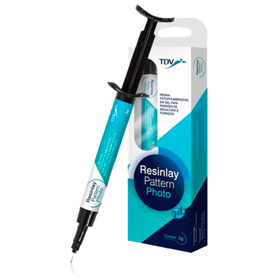 Resina fotopolimerizável em gel para padrões de escultura e fundição.A resinlay pattern photo é indicada para escultura de padrões de copings, abutments, pônticos, pontes, attachment, facetas, barras de protocolo, casquetes para moldagens, ferulizações de transfers de moldagem em casos de próteses múltiplas sobre dois ou mais implantes.- pronto e fácil para aplicar;- tixotropia ideal;- não aquece;- compatível com qualquer fotopolimerizador;- muda de cor ao final da polimerização, indicando o término do processo;- polimerização rápida independente da temperatura;- não deixa resíduos após a queima;- maior agilidade quando comparada com a cera e/ou resina acrílica;