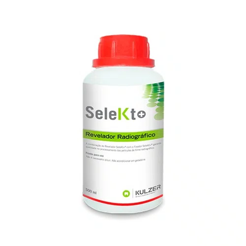 Revelador é um agente químico à base de hidroquinona;Pronto para utilização sem a necessidade de diluição;O produto é utilizado para a revelação da imagem na película radiográfica.O SeleKt+® Revelador em combinação com o SeleKt+® Fixador possibilita a transferência da imagem para película radiográfica;O tempo de Revelação e Fixação pode variar de 1 a 5 minutos conforme temperatura ambiente;Quanto mais frio, maior o tempo em que a película deve permanecer em contato com o Revelador para obtenção da imagem.Idicação:O produto é utilizado para a fixação da imagem revelada na película radiográfica.